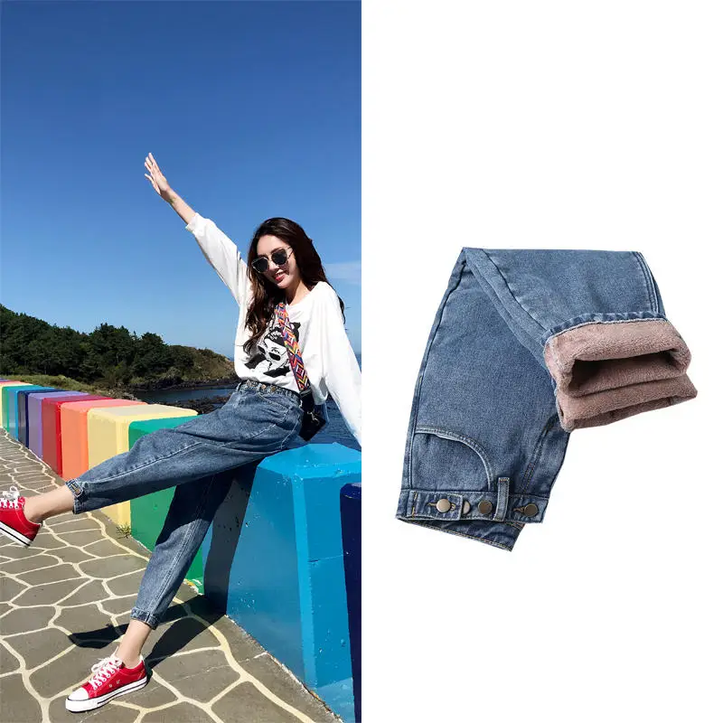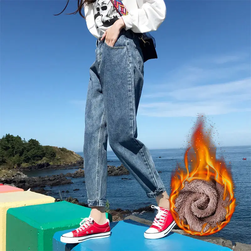 Best Plus Velvet Boyfriend Jeans For Women Thicken Warm Winter Jeans Women Loose Harem Pants Vaqueros Mu