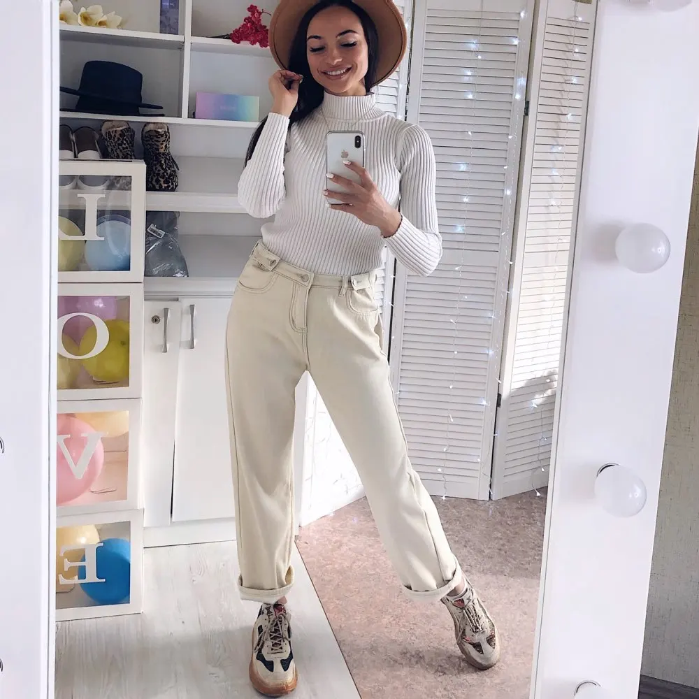awesome Vintage Fur Jeans Straight Women Winter Jeans 2019 High Waist Boyfriend Denim Pants Loose Mom Jeans