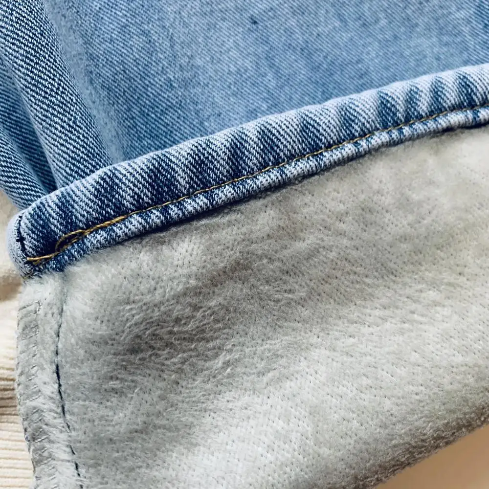 discount Vintage Fur Jeans Straight Women Winter Jeans 2019 High Waist Boyfriend Denim Pants Loose Mom Jeans
