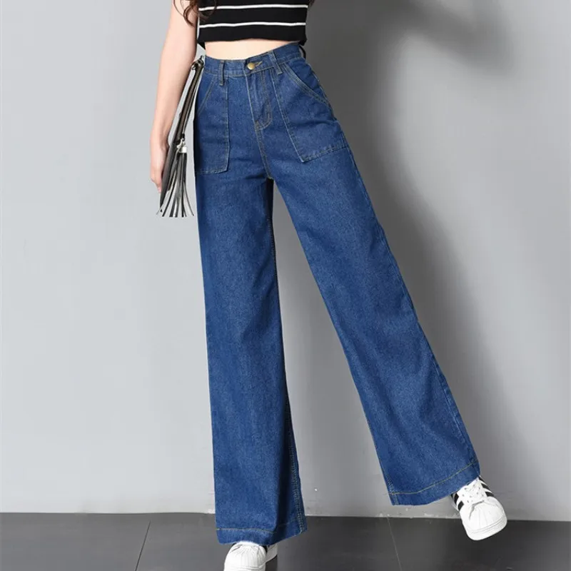 Vintage Woman Jeans For women Women Spring Casual Denim Wide Leg Loose Pants Full Length Length Oversize High Waist Jean,Blue Wide Leg pants Women Summer Autumn Solid High Waist High Street Ladies Mom pants Plus Size, Blue Wide Leg pants Women Summer Autumn Solid High Waist High Street Ladies Mom pants Plus Size