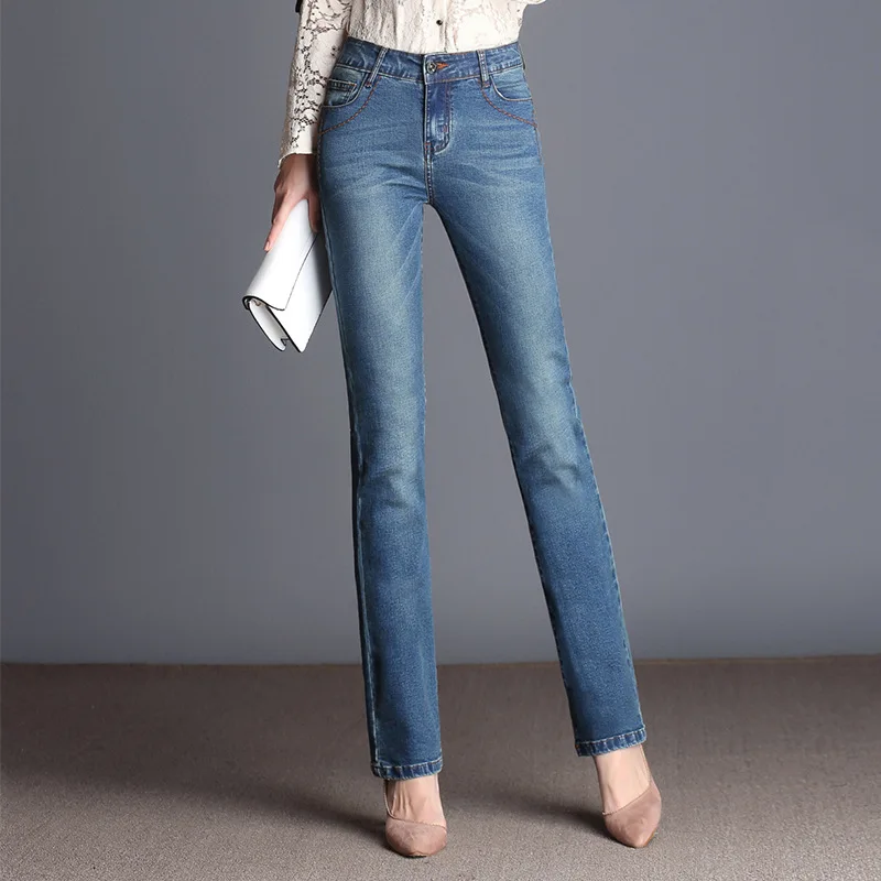 price reduction Women Pants 2019 New Casual Fashion High Waist Elastic Jeans Ladies Denim Trousers Large Size Women