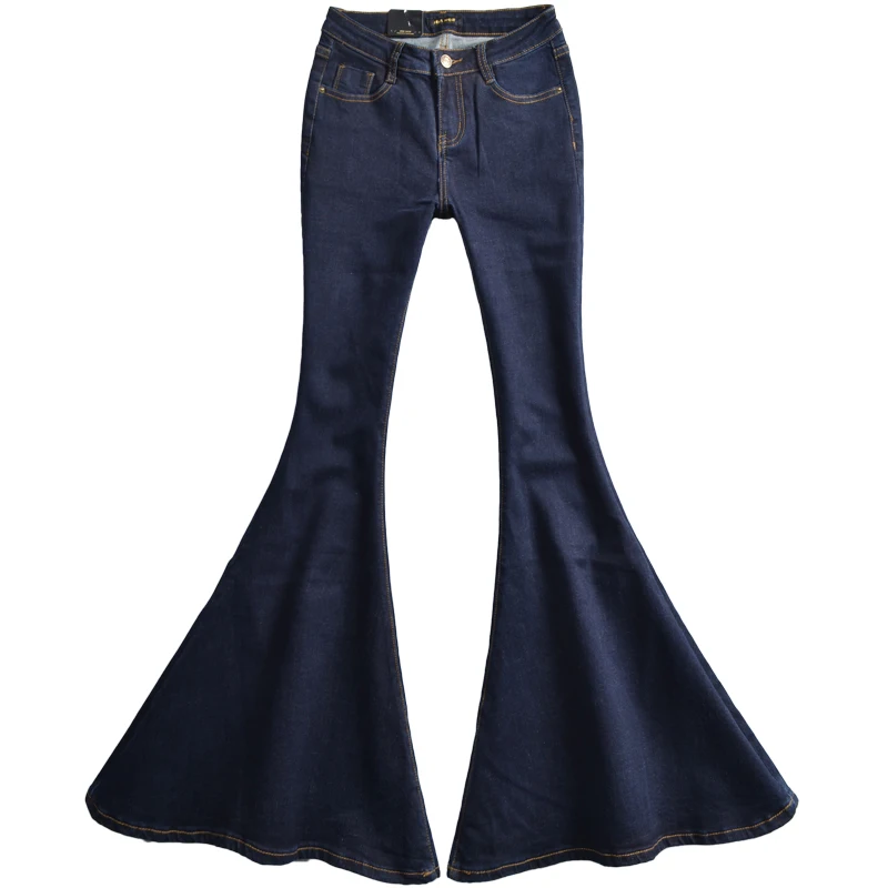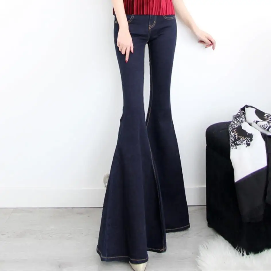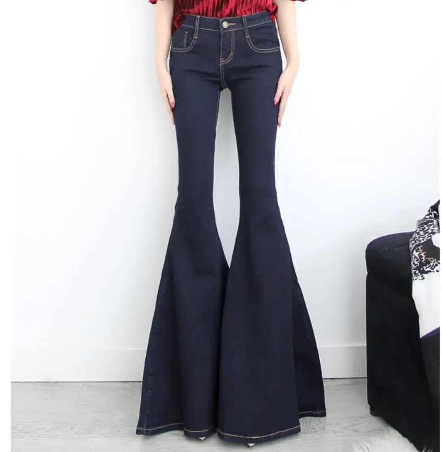 Finest Fashion Women Super Flare Leg Jeans Spring Autumn Bell Bottom Jeans Pants Ladies Mermaid Wide Jeans